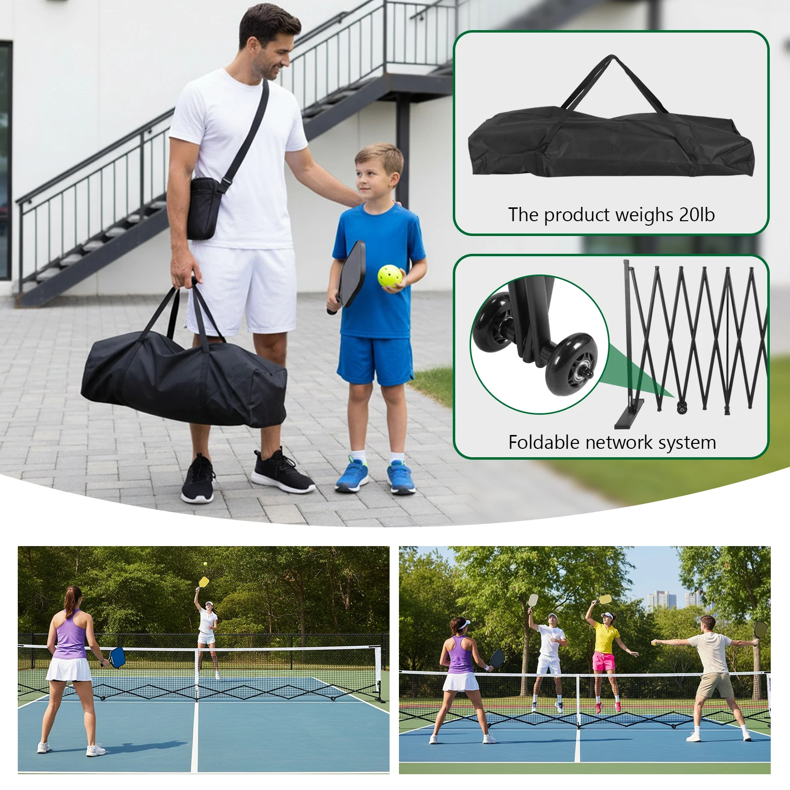 1.Effortless Setup: With our retractable pickleball net system, the game begins in under a minute-simply press the side button for quick assembly. Spend more time playing and less time setting up, suit for players across all skill levels.